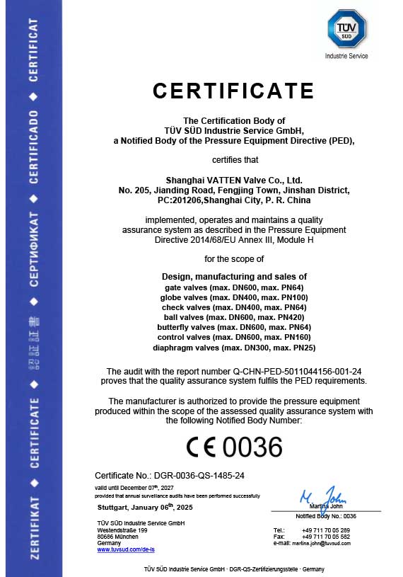 Vatten Valve Group, всемирно известное предприятие по производству промышленной автоматизации из Саара, Германия, специализируется на исследованиях, разработках и производстве основной продукции, такой как шаровые краны с автоматическим управлением, дроссельные заслонки и регулирующие клапаны. Используя наш исключительный технологический опыт, мы поставляем инновационные решения в области клапанов и профессиональную техническую поддержку для важнейших отраслей промышленности, включая энергетику, химическую, водоочистную, фармацевтическую и пищевую промышленность.